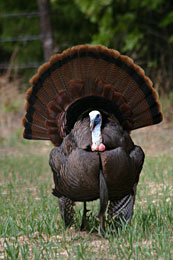 He slowed down at 50-yards and I clucked twice more. Now he was totally committed and came right to the three impersonators. Spencer had his 12-gauge magnum loaded with FEDERAL’S new #7 shot turkey loads. The huge black bird was strutting between the hens when I made a single putt with my voice. When he raised his head to look, Spencer’s shot went right threw it.